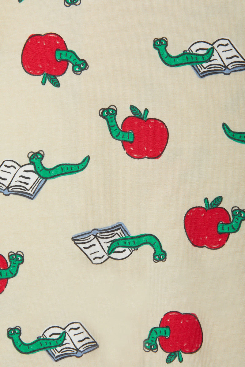 A book-worm print two-way zipped Wondersuit.